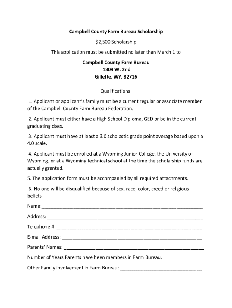 Get the free Campbell County Farm Bureau Scholarship Application