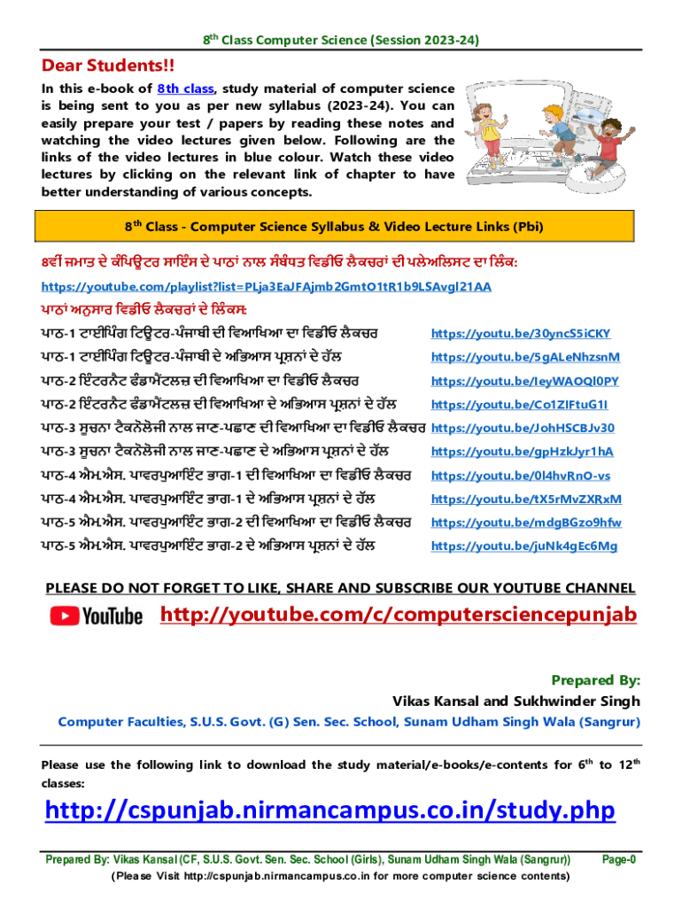 Get the free In this e-book of 8th class, study material of computer science