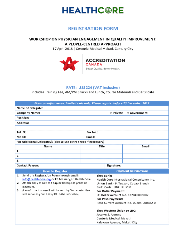 Register for the Workshop on Physician Engagement in Quality Improvement. Join us on April 17, 2018, at Centuria Medical Makati. Limited slots available!