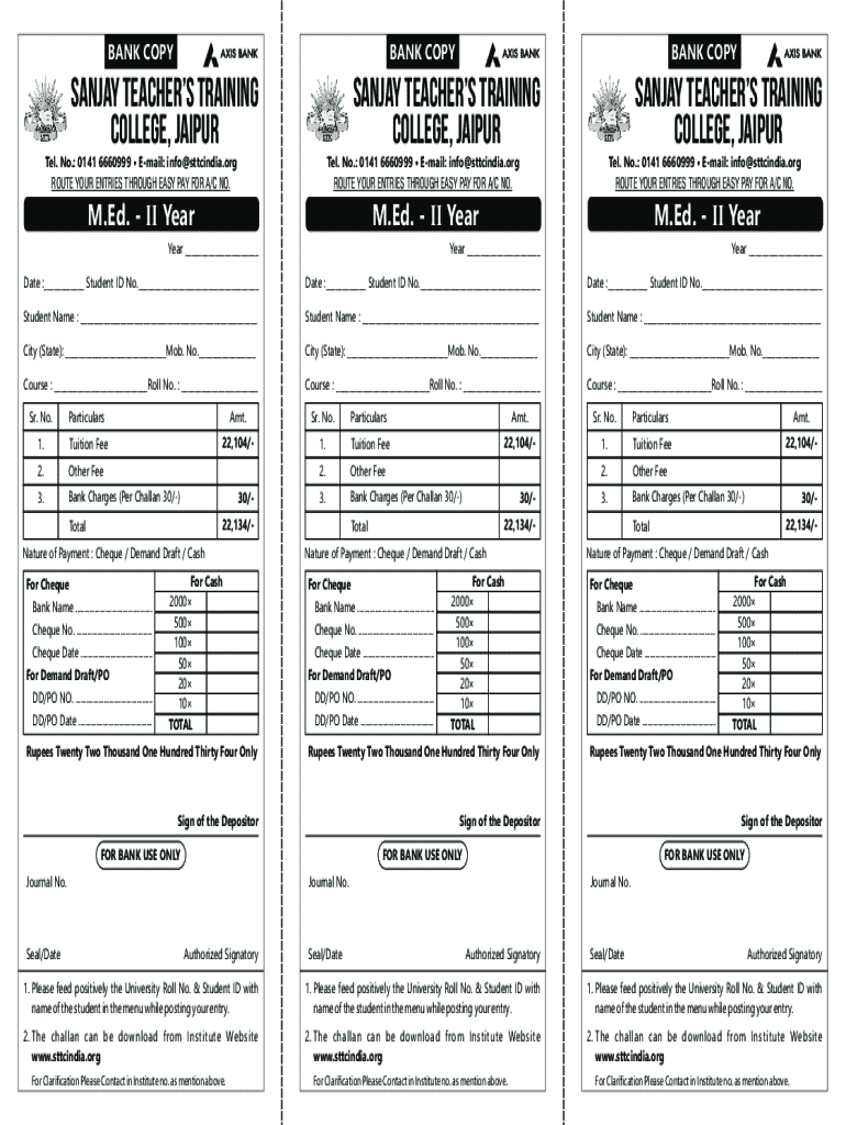 BANK COPYBANK COPYSANJAY TEACHERS TRAINING COLLEGE, JAIPURBANK COPYSANJAY TEACHERS TRAINING COLLEGE, JAIPURSANJAY TEACHERS TRAINING COLLEGE, JAIPURTel. No.: 0141 6660999 Email: info@sttcindia.org