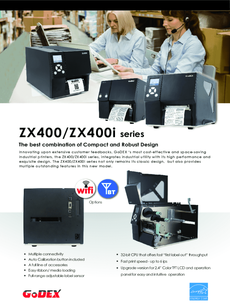 ZX400/ZX400iseriesThe best combination of Compact and Robust Design Innovating upon extensive customer feedbacks, GoDEX s most costeffective and spacesaving Industrial printers, the ZX400/ZX400i series,