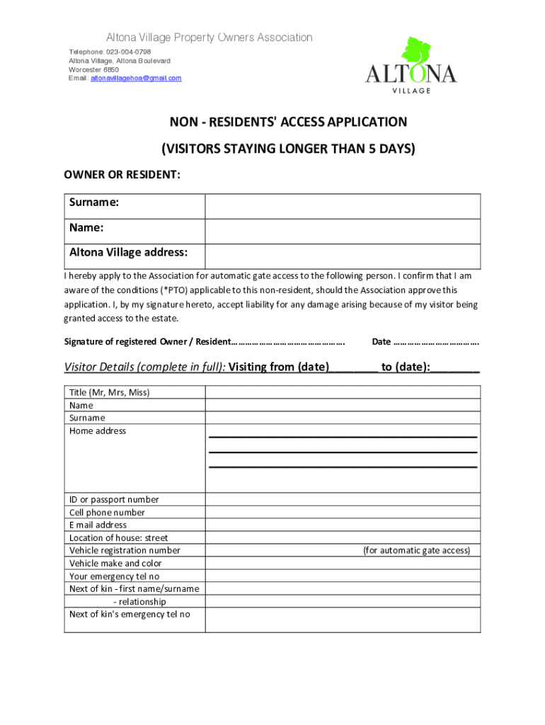 Get the free Non-residents' Access Application
