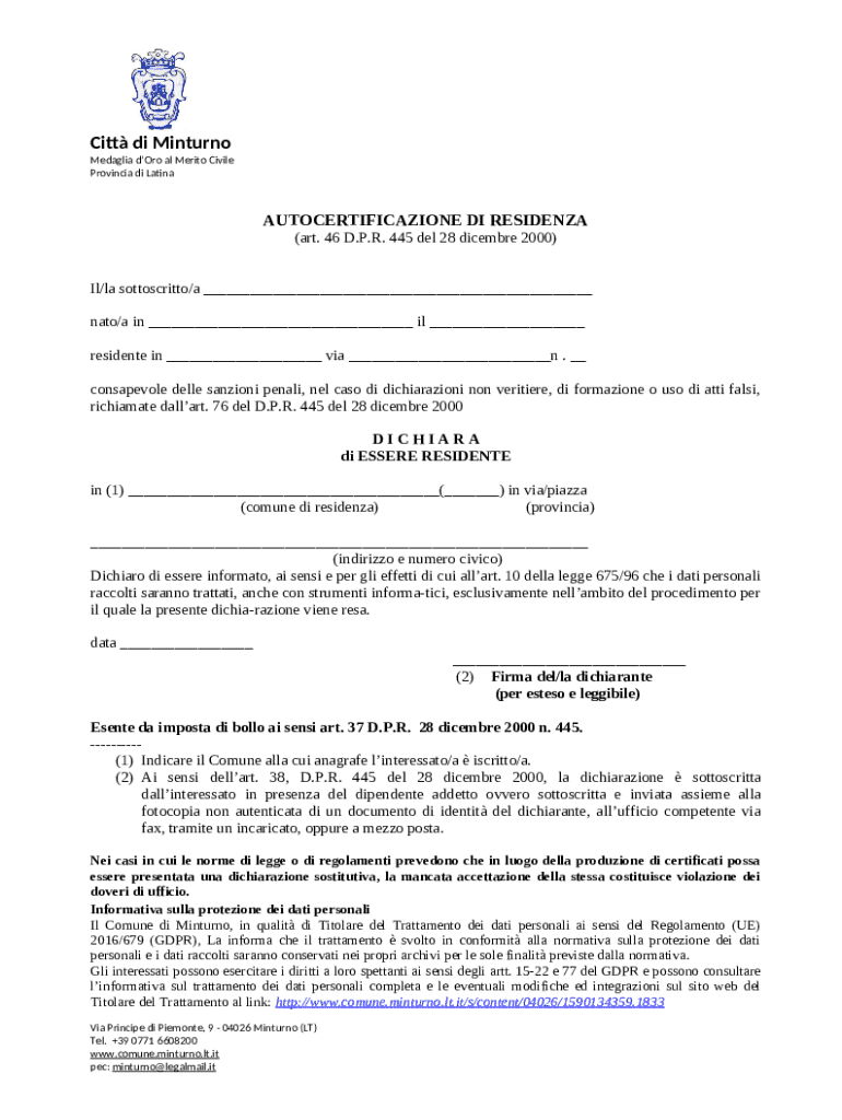 Frequently asked questions about the form Dichiarazione sostitutiva di certificazione di residenza, ...