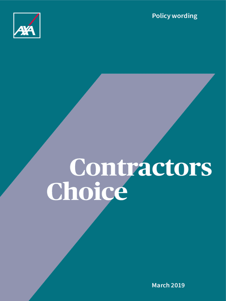 Explore the Contractors Choice insurance policy from 2019, covering liabilities such as public liability, employers liability, contractors all risks, and more for effective risk management.