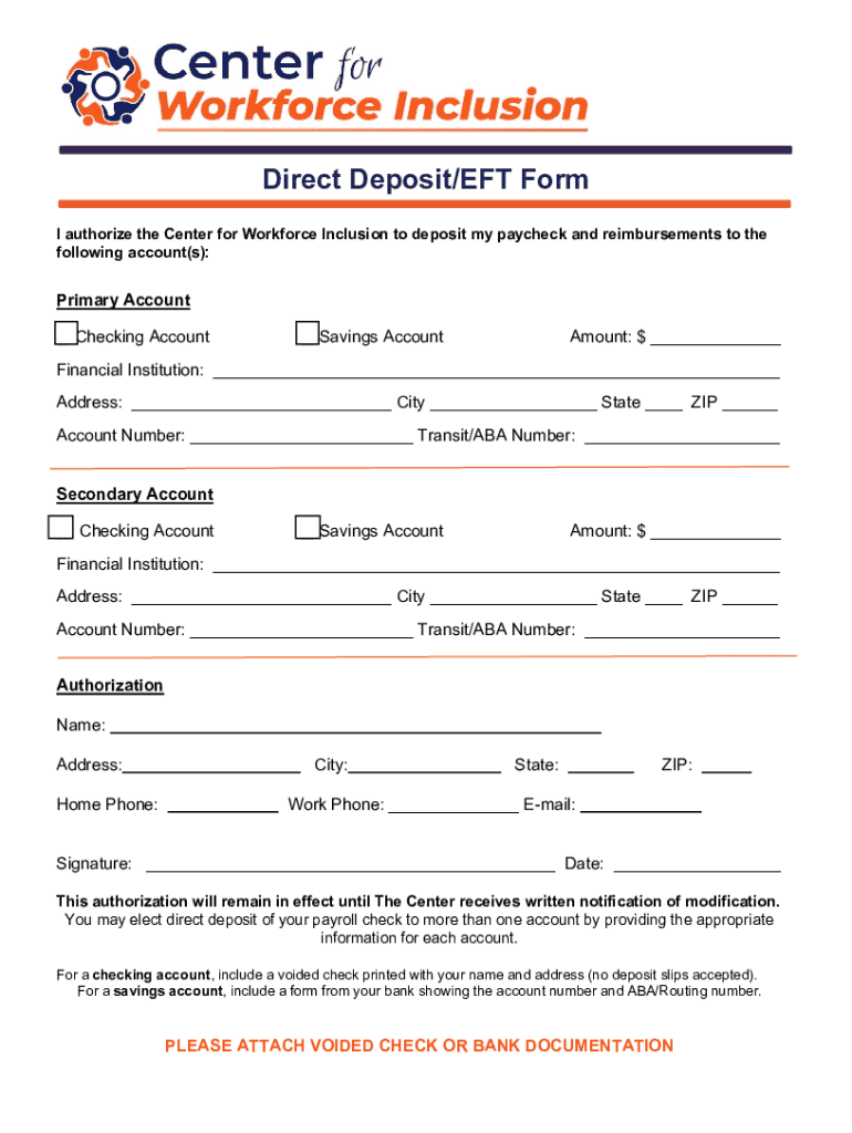 What is the purpose of direct deposit EFT form?