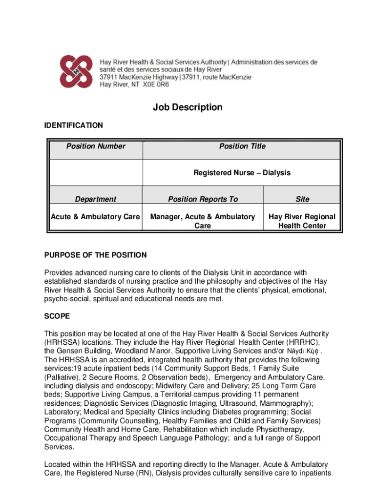 Explore the responsibilities and qualifications for a Registered Nurse in Dialysis at HRHSSA. Discover how this role supports clients with renal disease through advanced nursing care.