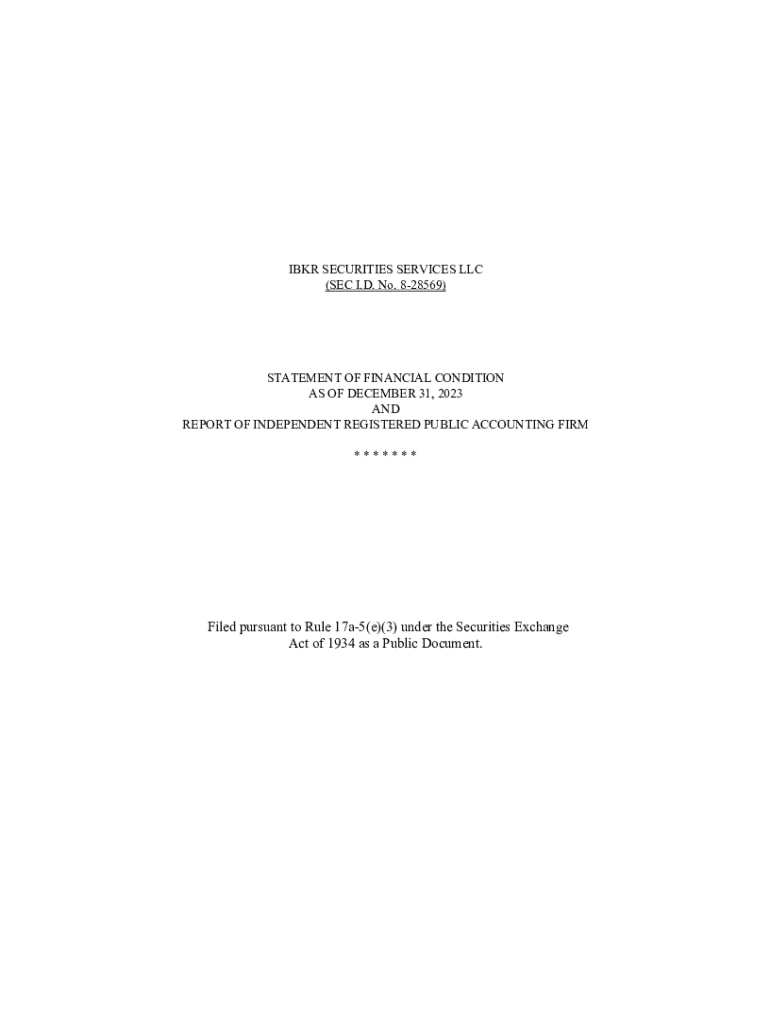 BKR SECURITIES SERVICES LLC (SEC I.D. No. 828569)STATEMENT OF FINANCIAL CONDITION AS OF DECEMBER 31, 2023, AND REPORT OF INDEPENDENT REGISTERED PUBLIC ACCOUNTING FIRM *******Filed pursuant to Rule