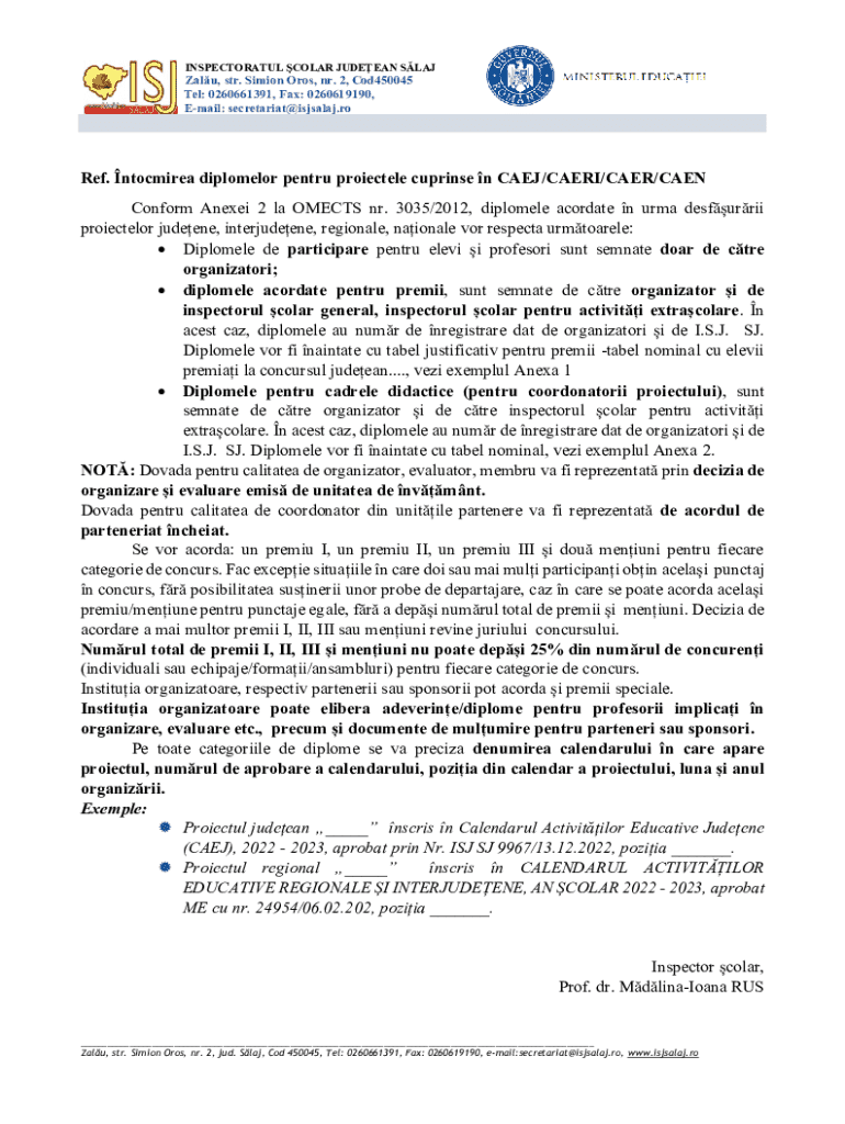 Email: secretariat@isjsalaj.roRef. Ntocmirea diplomelor entry projectile cup rinse n AEJ/CAPRI/CAR/CAN