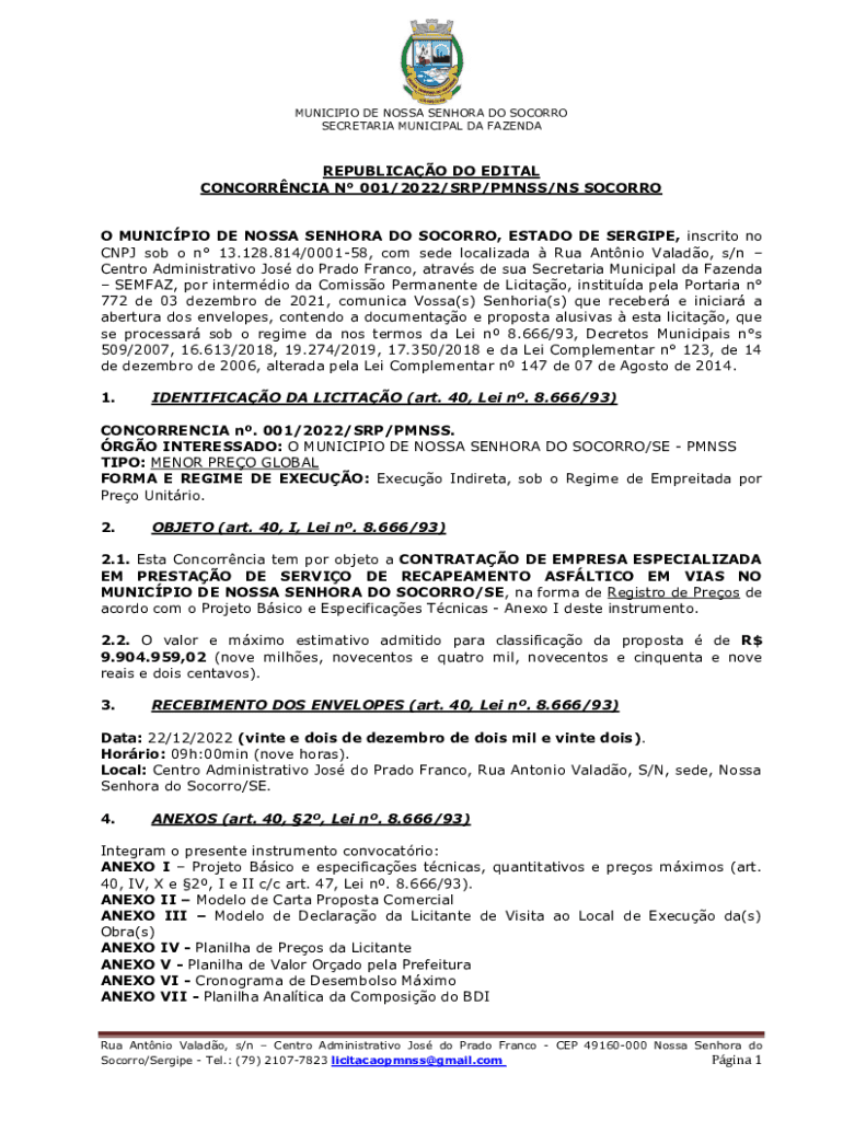 Obtenha o gratuito Pgina 1 REPUBLICAO DO EDITAL CONCORRNCIA ...