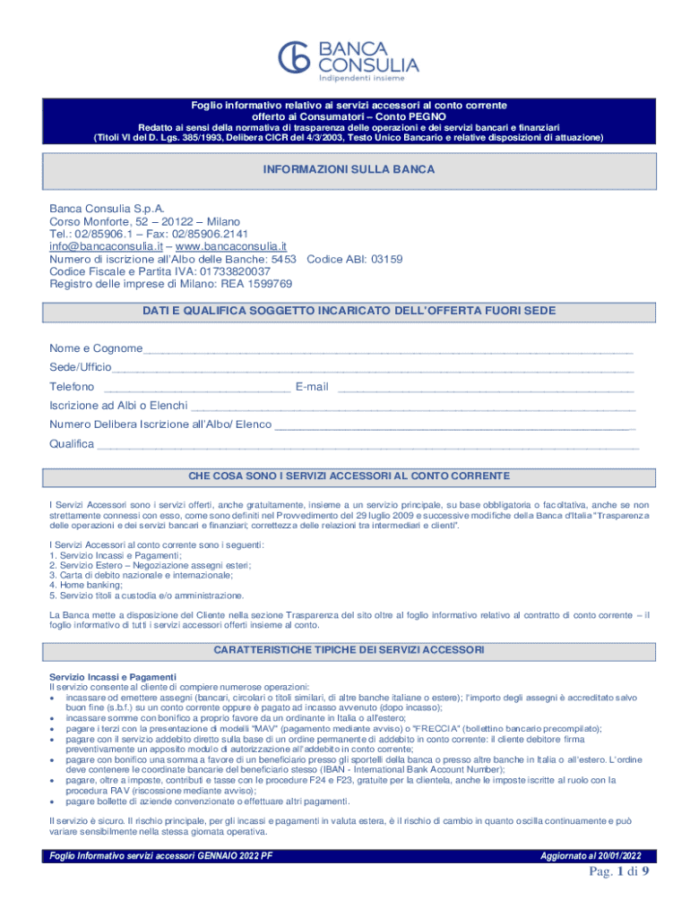 Ottieni il gratuito offerto ai Consumatori Conto PEGNO