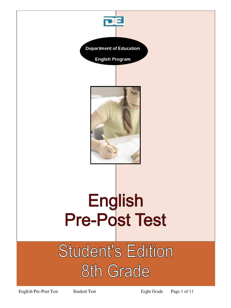 The English pre-post test is an assessment tool used to evaluate a person's proficiency in the English language before and after a particular program or course.