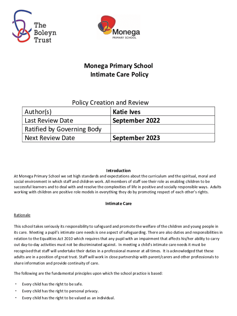 Get the free Intimate Care Policy