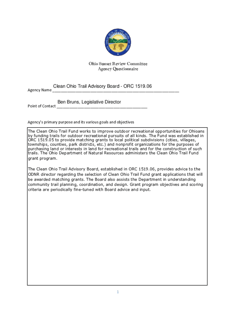 Get the free Ohio Sunset Review Committee Agency Questionnaire - sunset legislature ohio