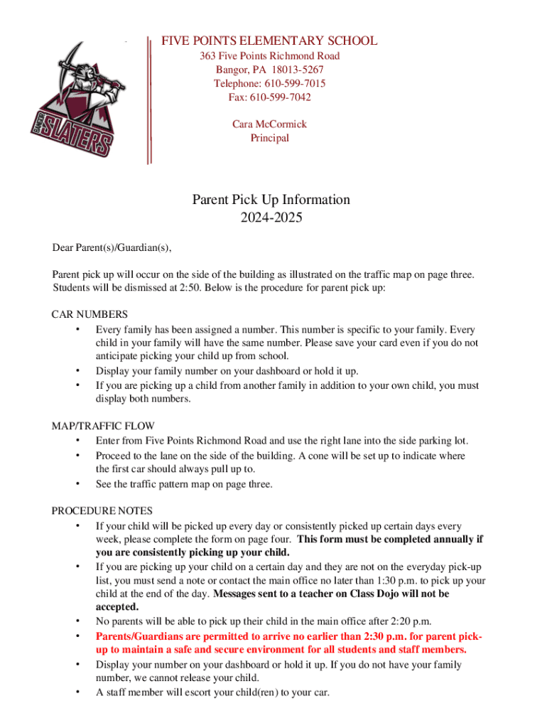 Essential guidelines for parent pick up at Five Points Elementary School for the 2024-2025 school year. Learn about car numbers, traffic patterns, and procedures.