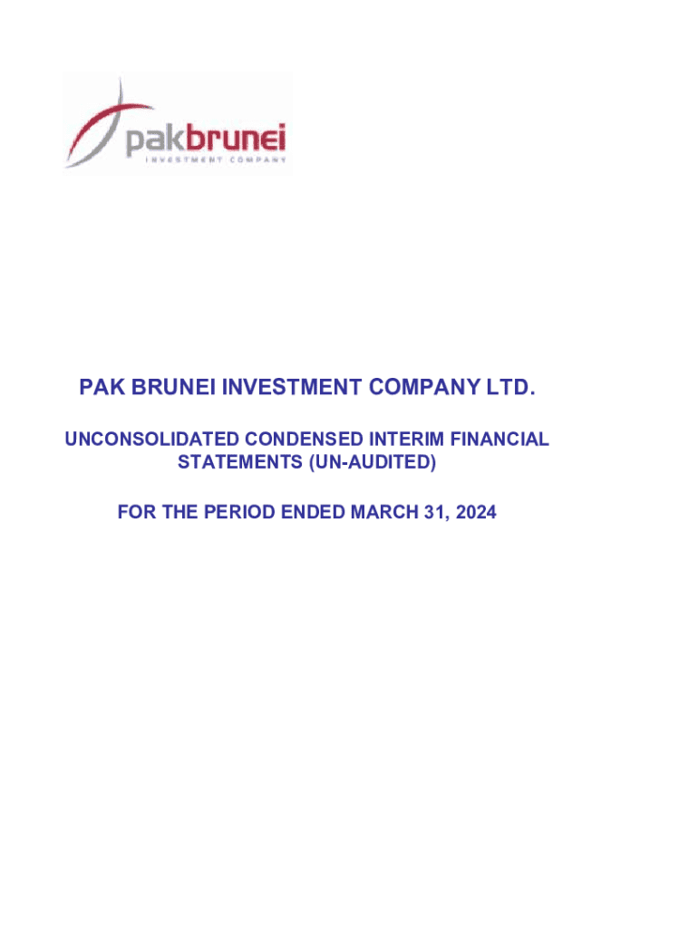 Explore the un-audited financial statements of Pak Brunei Investment Company Ltd for the period ending March 31, 2024, including economic outlook and performance insights.
