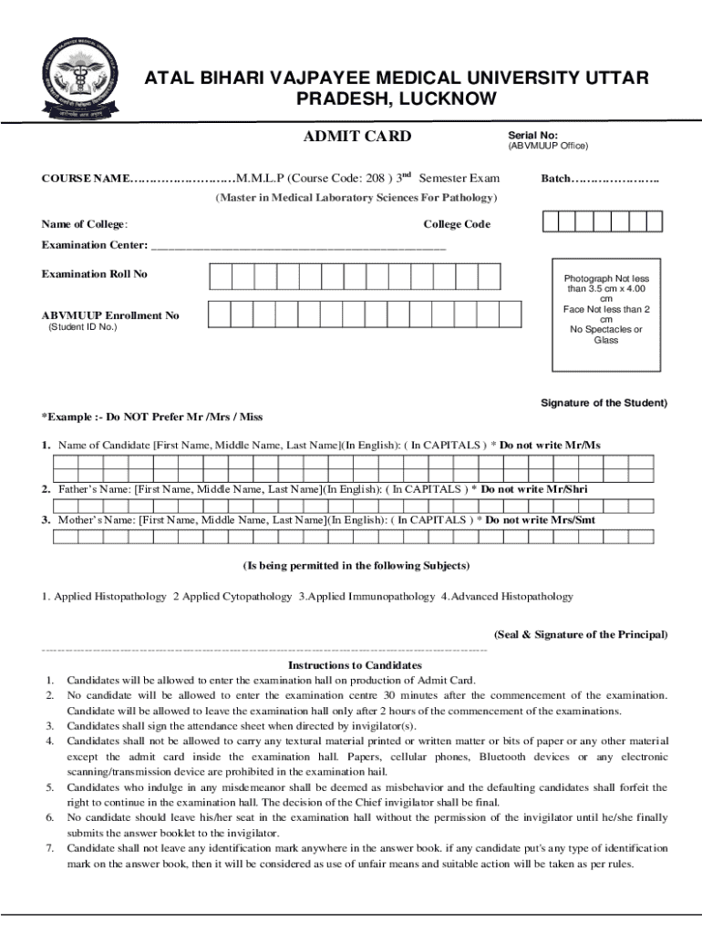 (ABVMUUP Office)COURSE NAME. M.L.P (Course Code: 208) 3rd Semester ExamBatch.(Master in Medical Laboratory Sciences