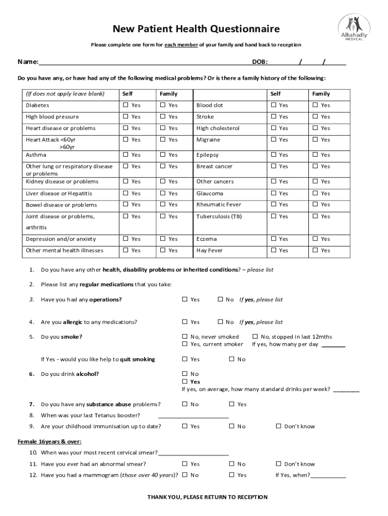 Get the free New Patient Health Questionnaire