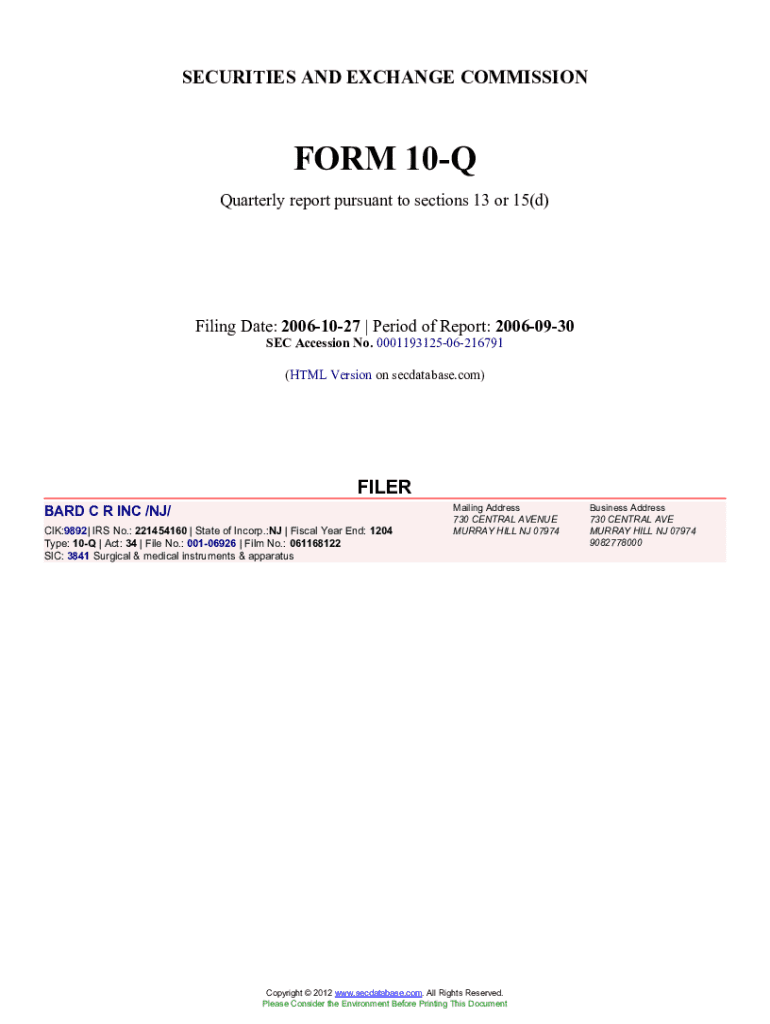 Get the free BARD C R INC /NJ/ (Form. Accession Number