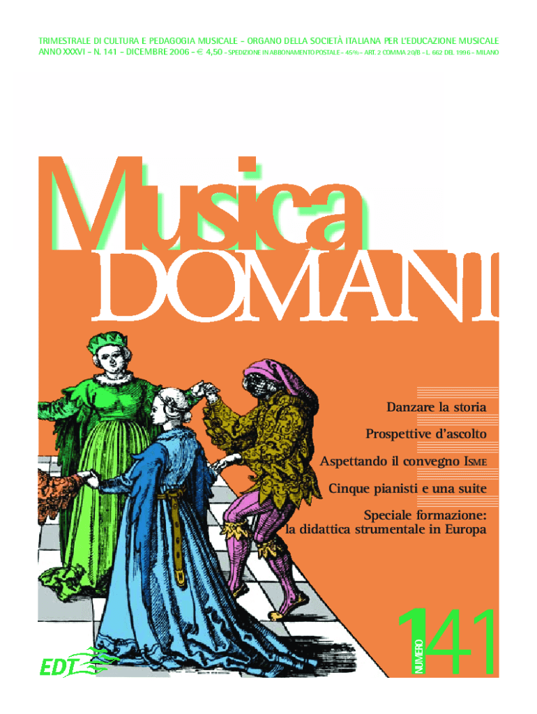 TRIMESTRALE DI CULTURA E PEDAGOGIA MUSICALE ORGANO DELLA SOCIET ITALIANA PER LEDUCAZIONE MUSICALE ANNO XXXVI N. 141 DICEMBRE 2006 4,50 SPEDIZIONE IN ABBONAMENTO POSTALE 45% ART. 2 COMMA 20/B L. 662