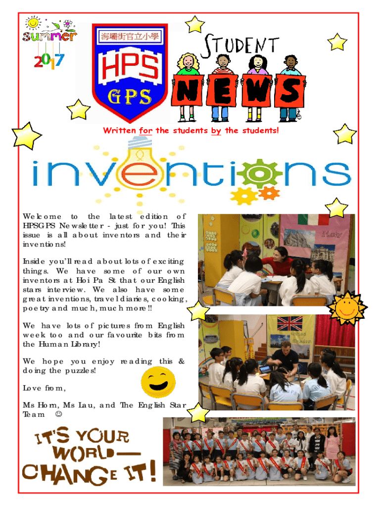 Explore the latest HPSGPS Newsletter filled with student inventions, travel diaries, creative puzzles, and exciting insights from the Human Library!