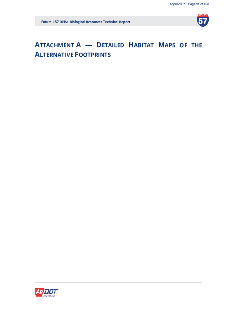 Appendix K: Page 91 of 428Future I57 DEIS: Biological Resources Technical ReportATTACHMENT A DETAILED HABITAT MAPS OF THE ALTERNATIVE FOOTPRINTSV illag e CreekAppendix K: Page 92 of 428W te hi k Oa Sl gh ouw Lace ren2R 43Law renc ed 2R 61d34 A aWalnut Ridge67 412 US 67 By p 67 US B ypRANDOLPH CO.5 4LnkD P ar rMonarch Butterfly Habitat Park Dr Eastern Black Rail Habitat0Streams / Rivers3Ca m27 261231 30 28 29 .NC RE 1 W LA 2ie14ECO15321635 34 333637