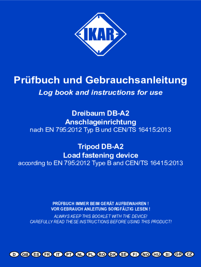 Produce UND Gebrauchsanleitung Log book and instructions for use Drama DBA2 Anschlageinrichtungnach EN 795:2012 Top B UND CEN/TS 16415:2013Tripod DBA2 Load fastening device according to EN 795:2012