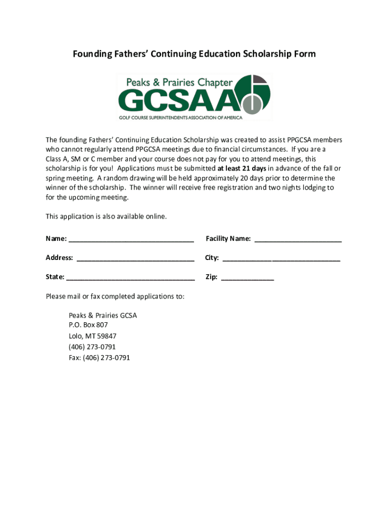 Get the free Founding Fathers’ Continuing Education Scholarship Form