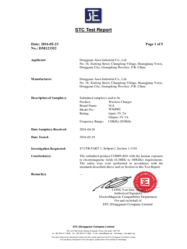 Get the free Stc Test Report