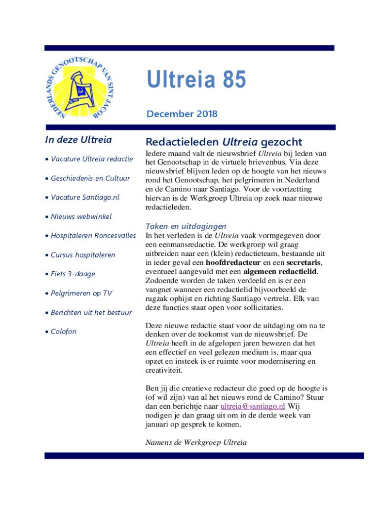 Vul uw pak de gratis ultreia online met pdfFiller!