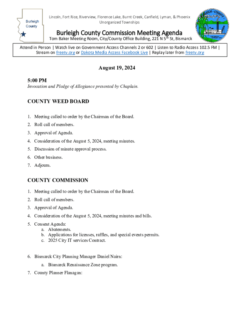 Get the free Burleigh County Commission Meeting Agenda