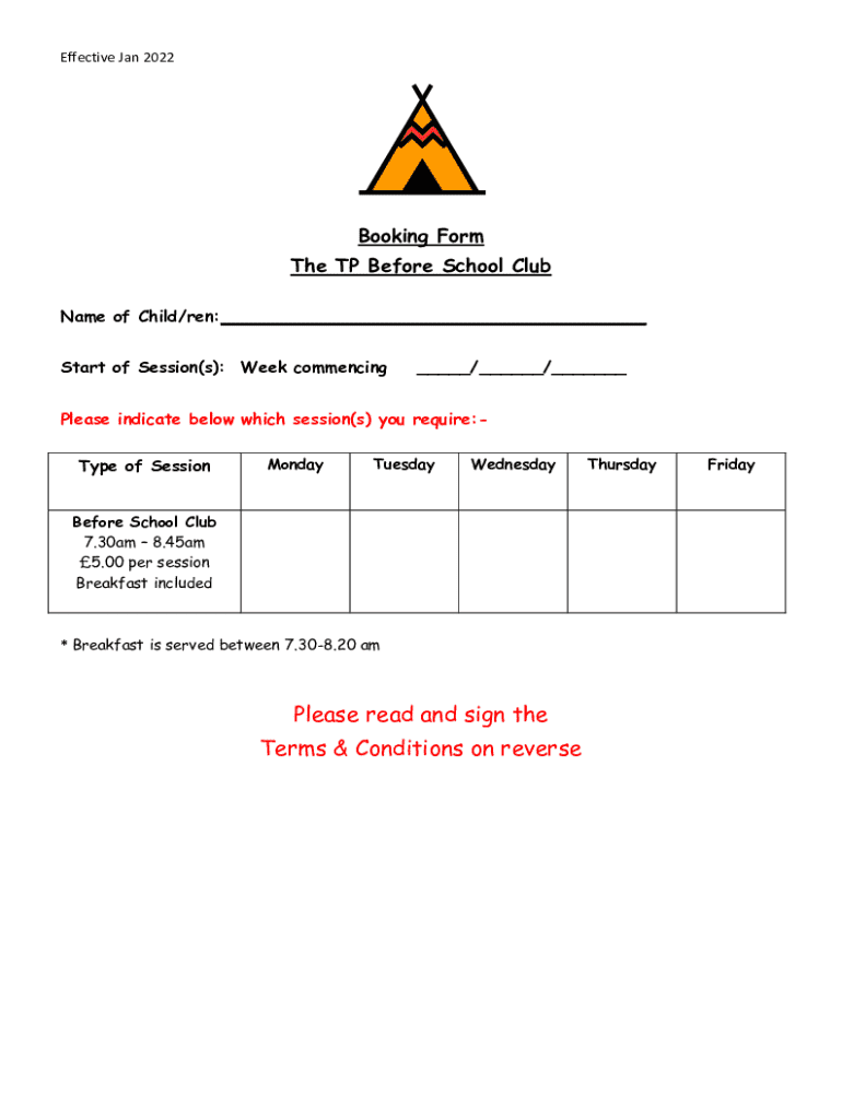 Complete the TP Before School Club Booking Form to secure sessions for your child. Ensure adherence to terms and conditions for a smooth experience.