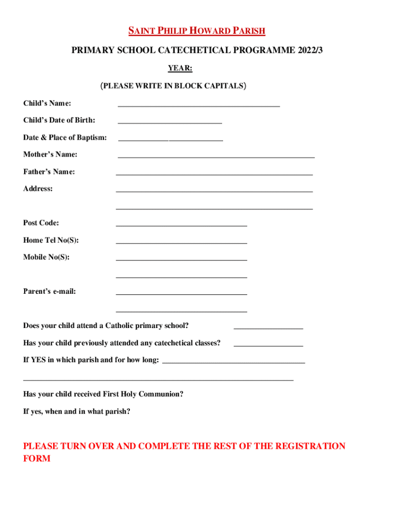 Get the free Saint Philip Howard Parish Primary School Catechetical Programme Registration Form