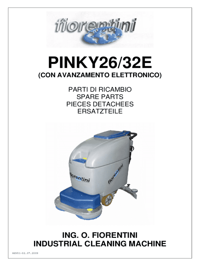 PINKY26/32E (CON AVANZAMENTO ELETTRONICO) PARTI DI RICAMBIO SPARE PARTS PIECES DETACHEES ERSATZTEILEING. O. FIORENTINI INDUSTRIAL CLEANING MACHINE REV0102.07.2009PINKY26/32ETAV. 1REV0102.07.20092N.Position