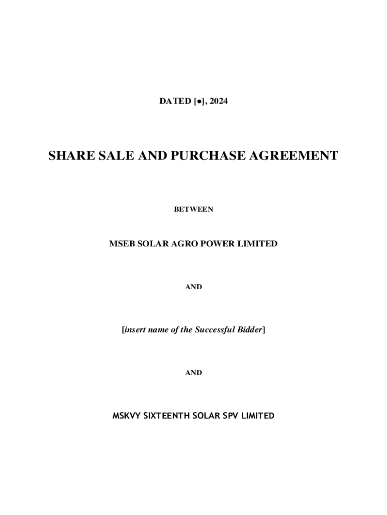 This Share Sale and Purchase Agreement outlines the terms between MSEB Solar Agro Power Limited and the successful bidder for the acquisition of shares in MSKVY Sixteenth Solar SPV Limited.