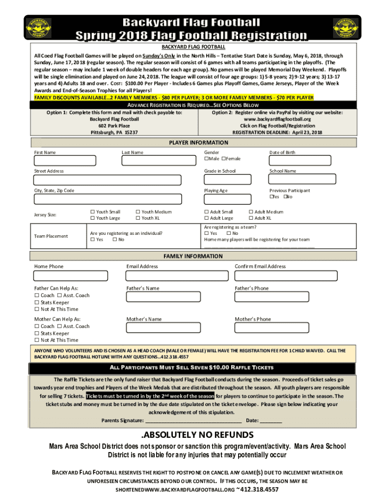 Backyard Flag Football Registration is not the form you're looking for?Search for another form here.