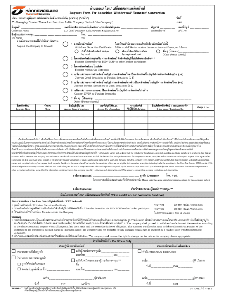 This form is for customers requesting the withdrawal, transfer, or conversion of securities. It includes detailed instructions and conditions of the transactions.