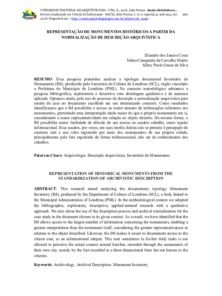 CONGRESS NATIONAL DE ARQUIVOLOGIA CNA, 8., 2018, Jew Person. Anaïs electronics...