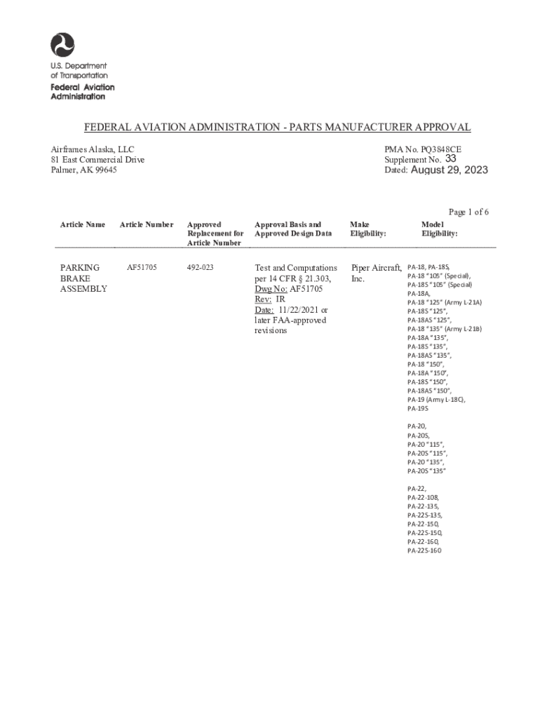 FEDERAL AVIATION ADMINISTRATION PARTS MANUFACTURER APPROVAL