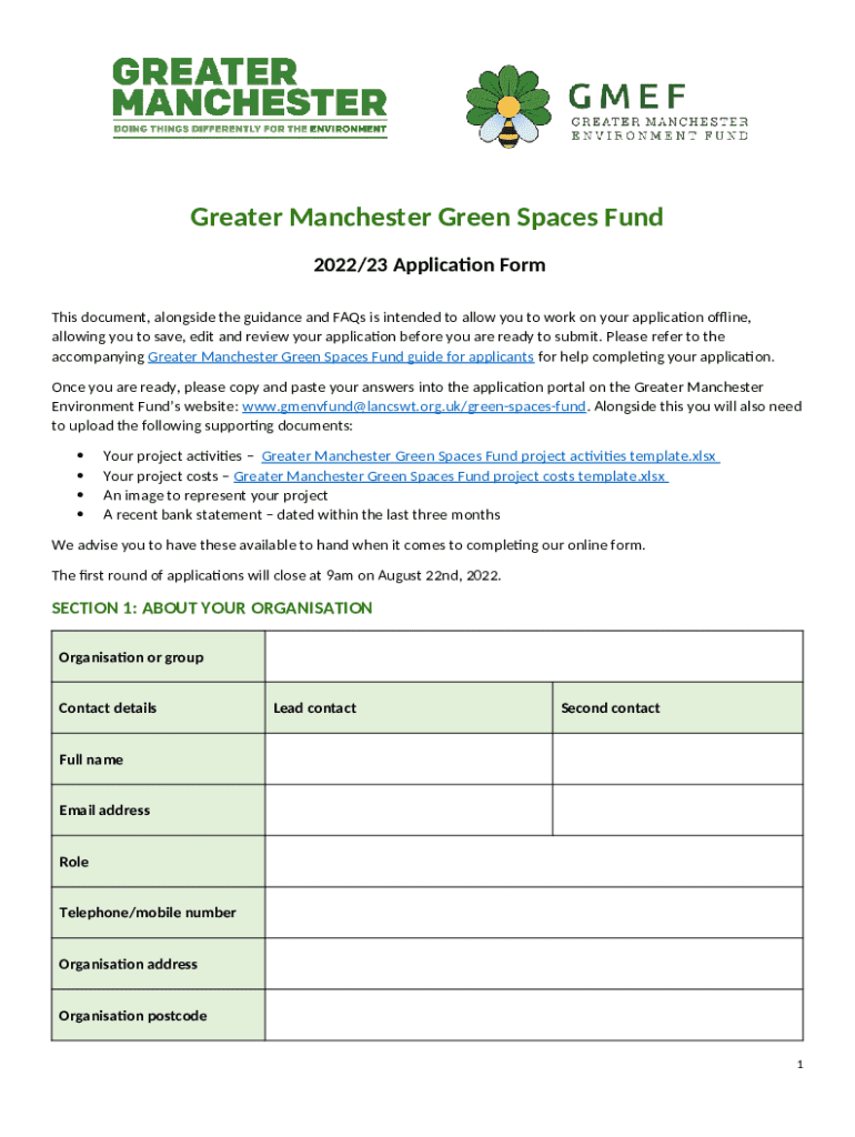 Template Greater Manchester Green Spaces Fund 2022/23 Application instructions