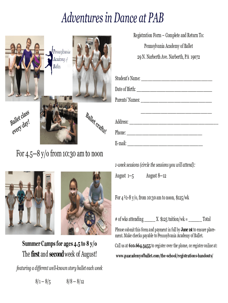Get the free Adventures in Dance Registration Form