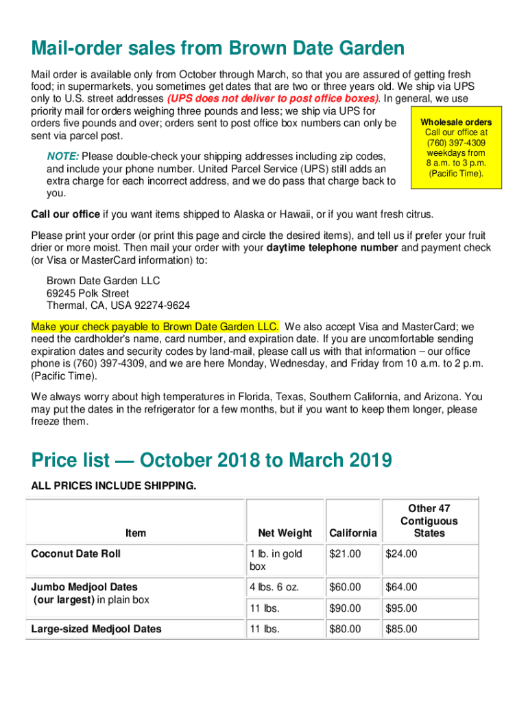Get the free Brown Date Garden Price List. mail order dates