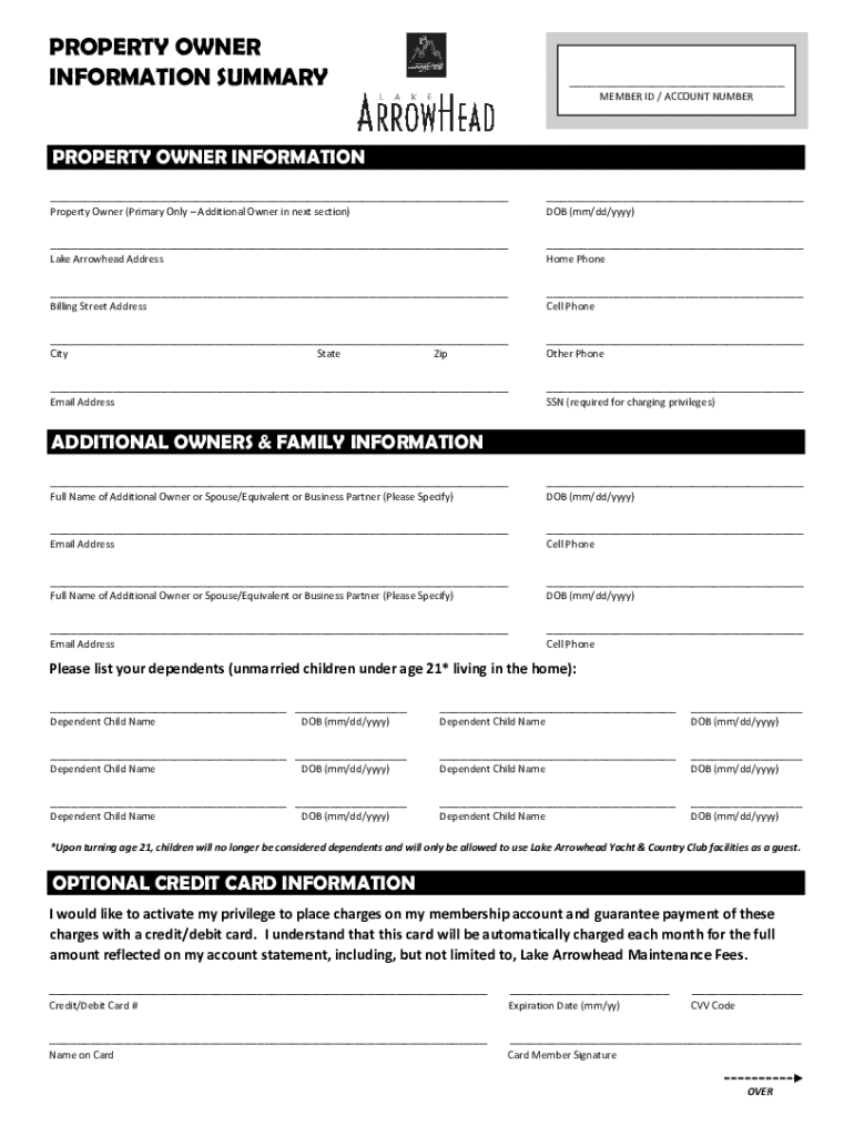 ______Property Owner (Primary Only Additional Owner in next section)DOB (mm/dd/YYY)______Lake Arrowhead Addressable