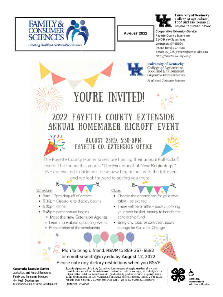 A 2022Cooperave Extension Service Faye e County Extension 1140 Harry Sykes Way Lexington, KY 40504 Phone (859) 2575582 Email: DL_CES_Faye e@email.uky.edu h p://faye e.ca.uky.edu/Its that time of year