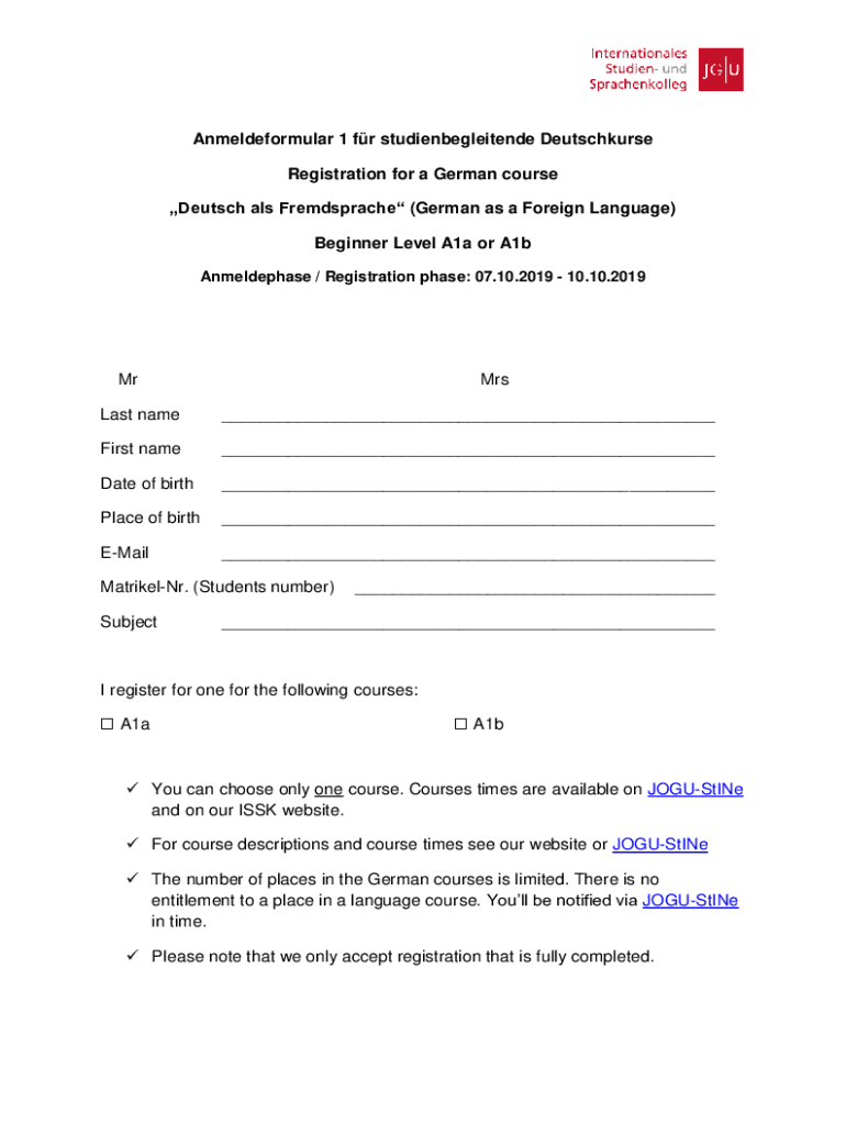 Anmeldeformular Fr Studienbegleitende Deutschkurse is not the form you're looking for?Search for another form here.