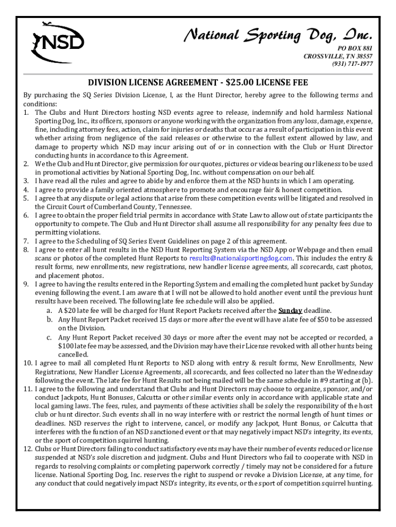 By purchasing the Series Division License, I, as the Hunt Director, hereby agree
