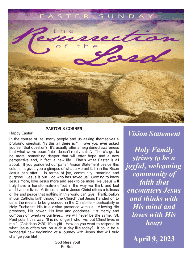 Happy Easter!PASTORS CORNERIn the course of life, many people end up asking themselves a profound question: Is this all there is? Have you ever asked yourself that question? Its usually after a heightened