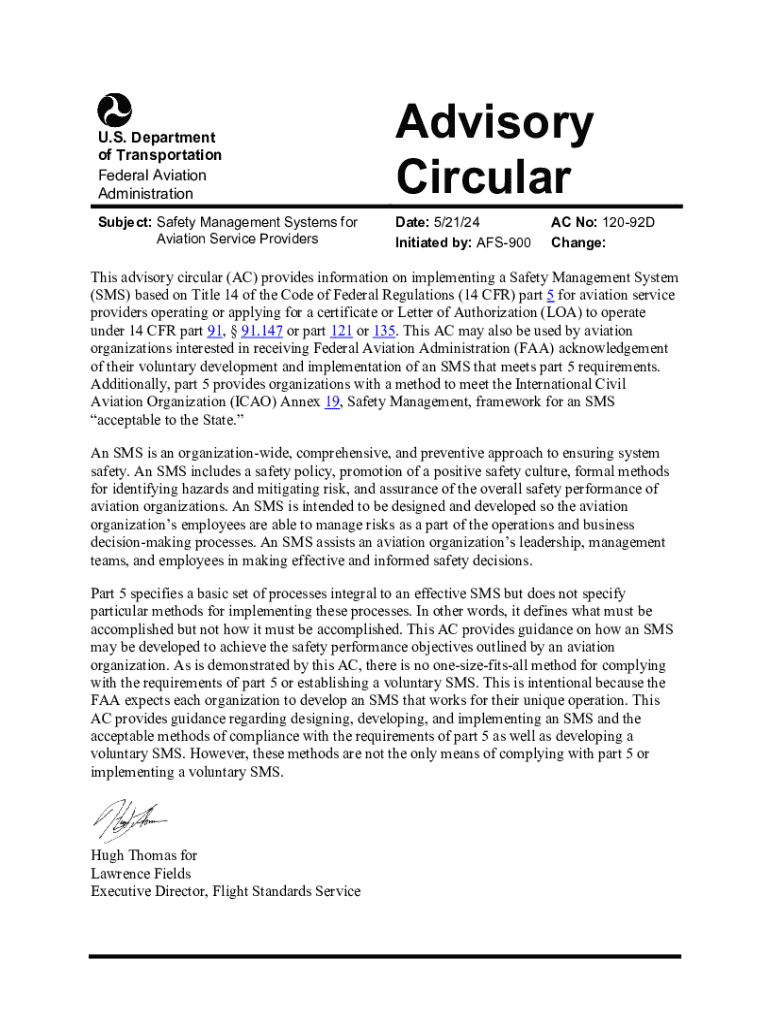 Get the free AC 120-92D. Safety Management Systems for Aviation Service Providers