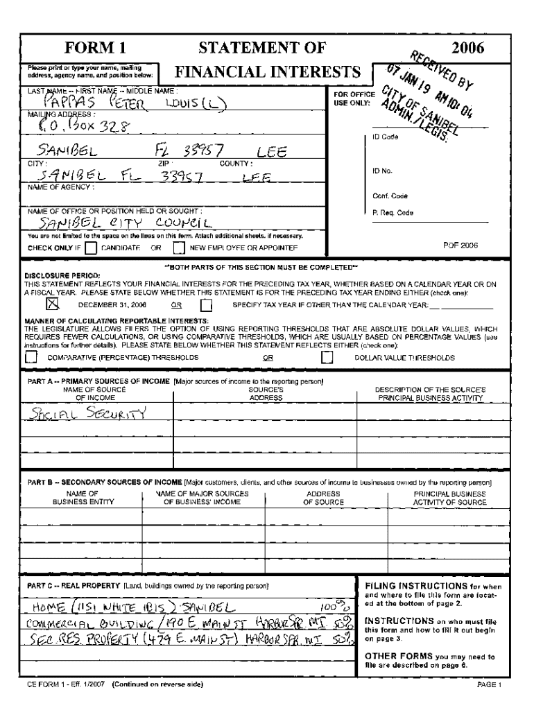 This document is a comprehensive guide for filing the Statement of Financial Interests in 2006, detailing income sources, liabilities, and filing instructions.