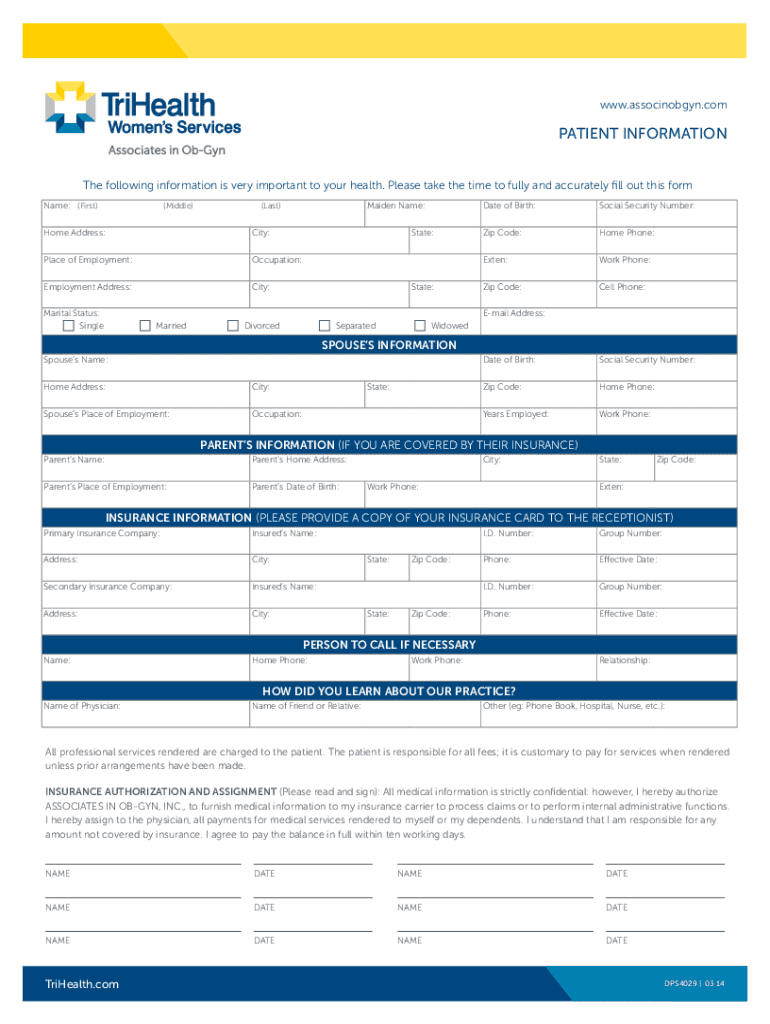 The following information is very important to your health. Please take the time to fully and accurately fill out this form