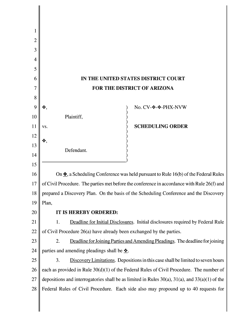 Get the free N: Scheduling Order Temp. - NVW Scheduling Order Form.wpd - azd uscourts
